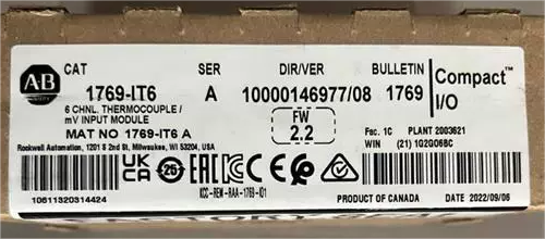 1769-IT6 Allen Bradley CompactLogix 6 Channel Thermocouple/Mv Input Module, 2 Cold Junction Sensors