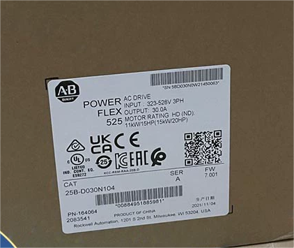 25B-D030N104 Allen Bradley PowerFlex 525 AC Drive, with Embedded EtherNet/IP and Safety, 480 VAC, 3 Phase, 20 HP, 15 kW Normal Duty; 15 HP, 11 kW Heavy Duty, Frame D, IP20 NEMA / Open Type, No Filter